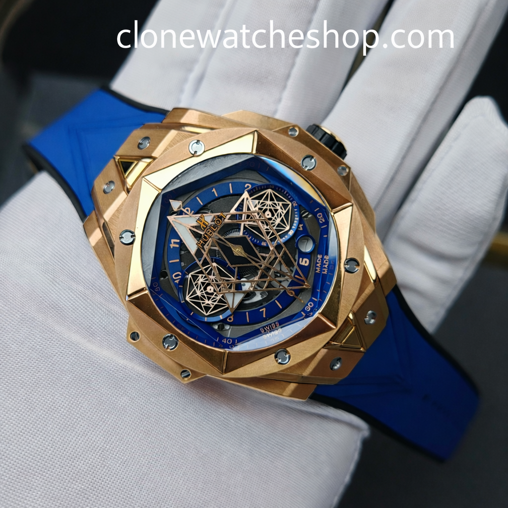 The Clone Watches is equipped with the Clone Hub1240 automatic flyback movement. The 4.5-digit hollow calendar circle is perfectly realized. The semi-toothed crown tattoo logo is always facing up. The texture is flawless, the side is a sapphire mirror, and the sandblasted pattern pointer. The size is 45 mm. The thickness is 16.6 mm. The weight is 153 grams. Similarity: more than 95%. All functions are perfect.