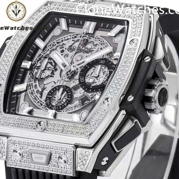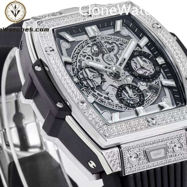 Hublot Spirit of Big Bang Titanium Pavé Super Clone Watches combines all the iconic features of the Spirit of Big Bang series with a new barrel-shaped case. The case is made of titanium and resin, and uses six H-shaped screws to build a “sandwich” structure to convey the concept of “integrated technology”. It is perfectly cloned with an exclusive customized HUB4700 movement, original folding clasp, and customized fluororubber strap. Clone Watches is equipped with a “one-button” quick-change strap system. The wearer can easily and quickly replace the strap with just a light press! ! !