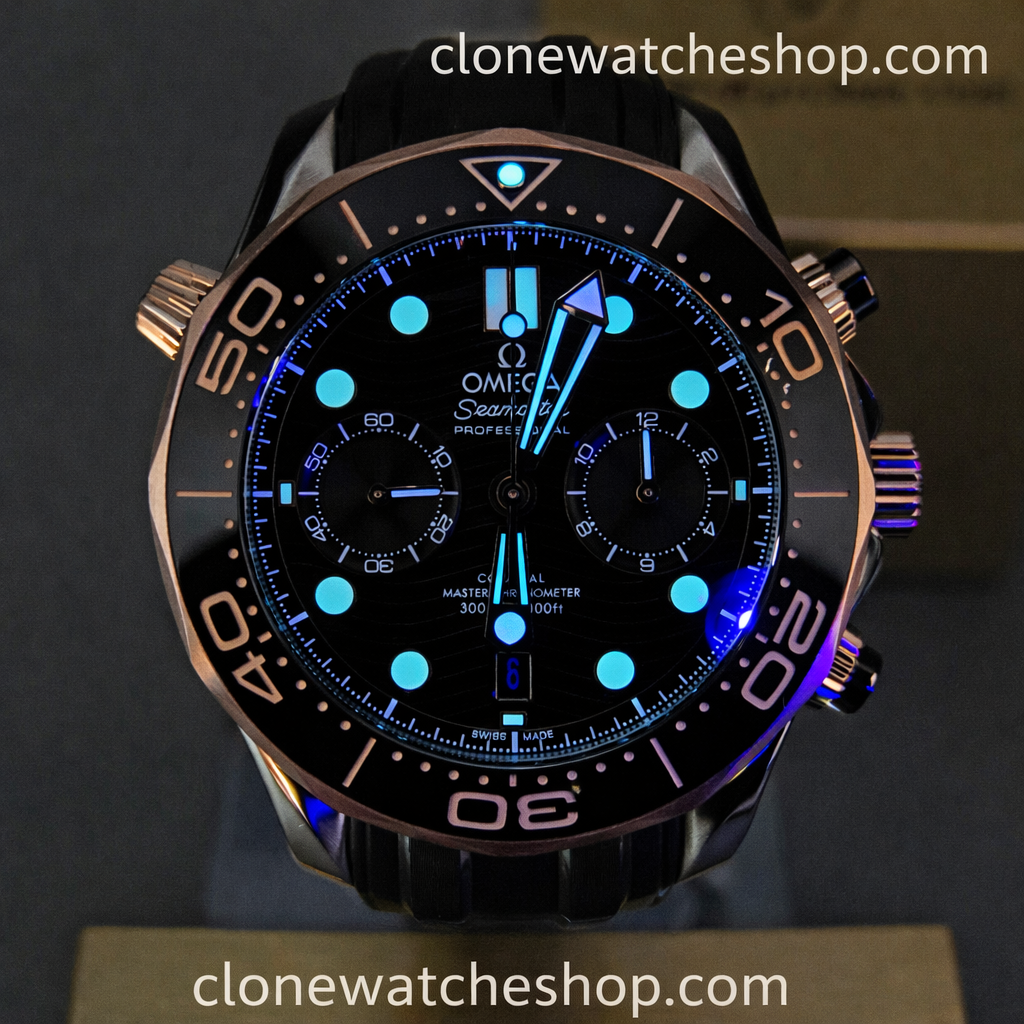 Bright Black SunrayFeatures the correct “Bright Black” sunray finish dial with 18k white gold plated hour markers filled with bright blue Chromalight lume.