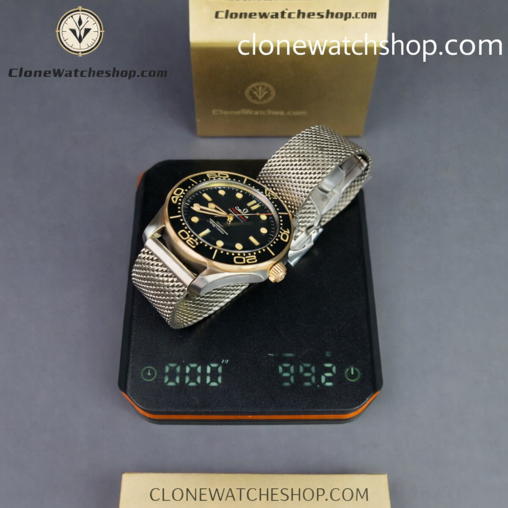 Full Disclosure: The titanium mesh bracelet on the replica is slightly stiffer than the genuine Omega mesh out of the box, but it softens with wear.