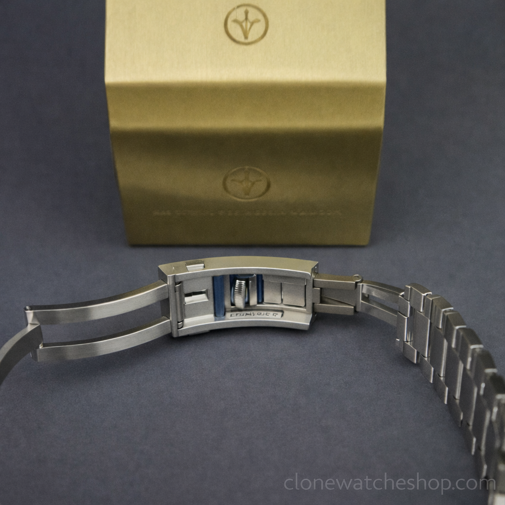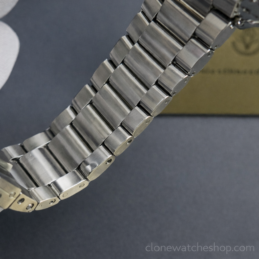 A: The weight. The genuine watch uses O-MEGASTEEL (a proprietary nitrogen-strengthened alloy). The VSF uses standard high-grade stainless steel, so there may be a slight difference in color tone and heft under direct comparison.