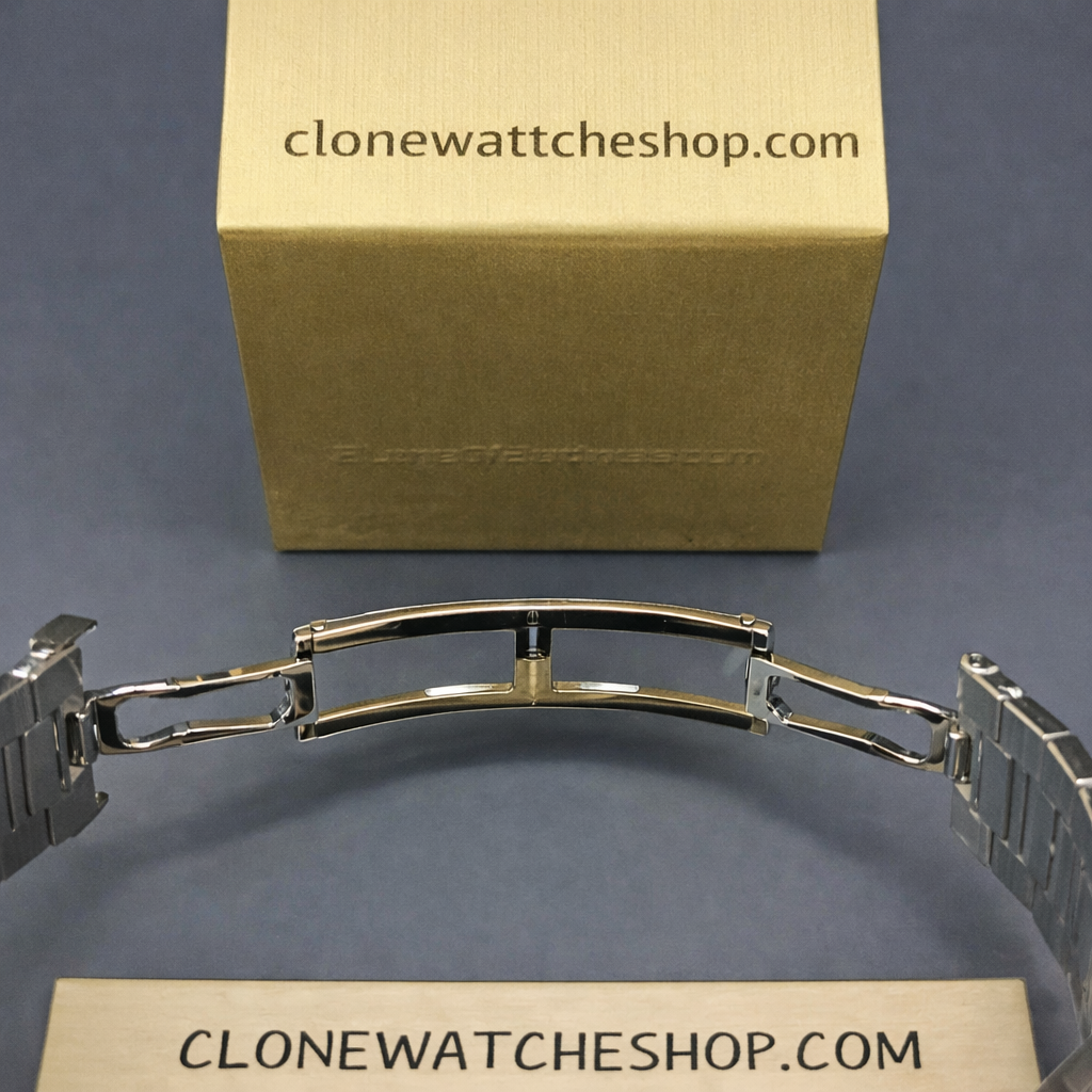 The back cover of the Clone Watches is made of stainless steel material with a black coating, and the visual look is very unified. The watch strap is particularly shocking, and is also made of a combination of carbon fiber and stainless steel. The texture of carbon fiber is like clouds and smoke, which makes people love it.