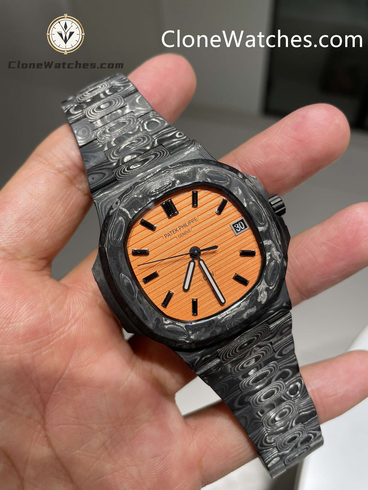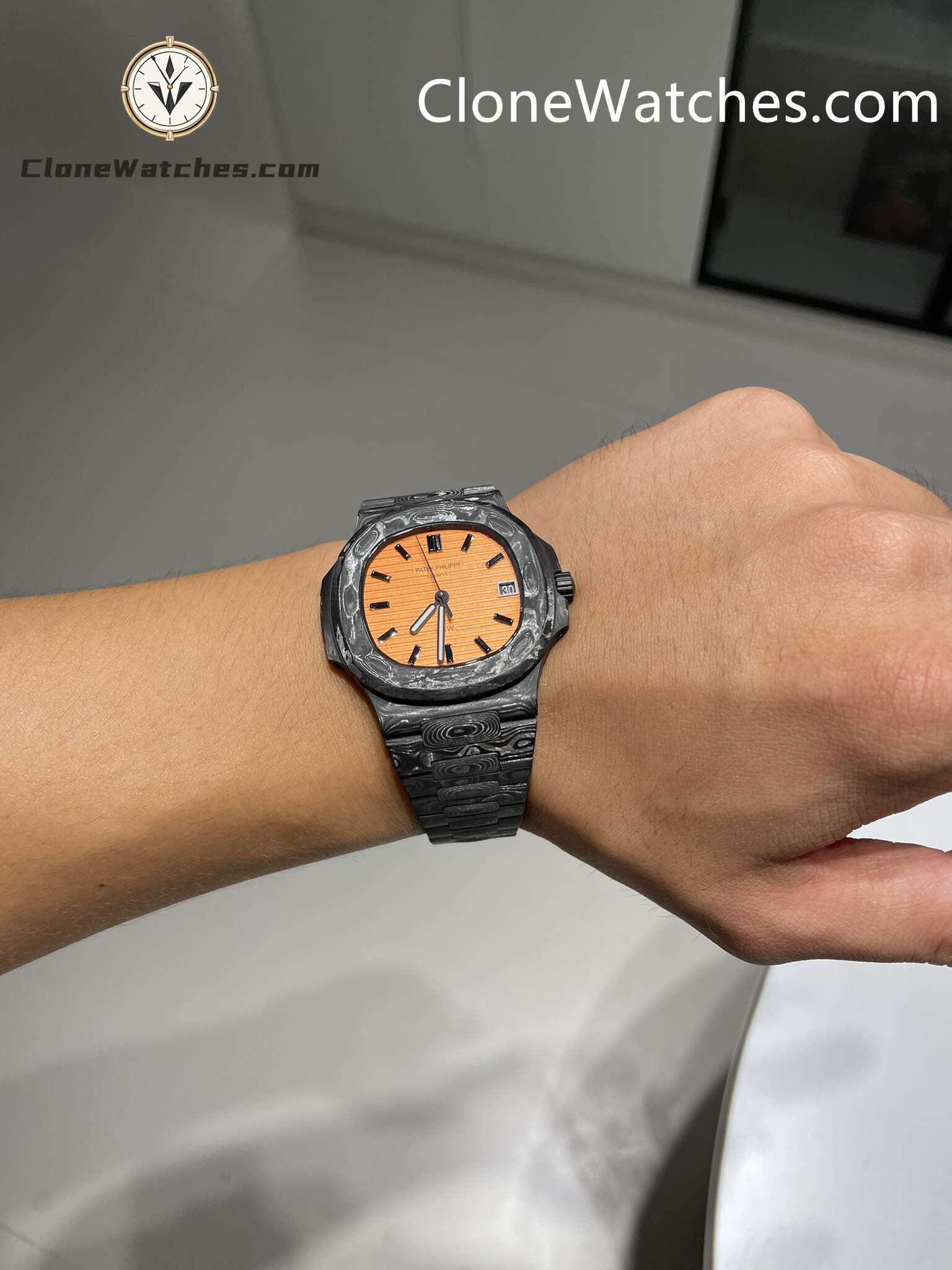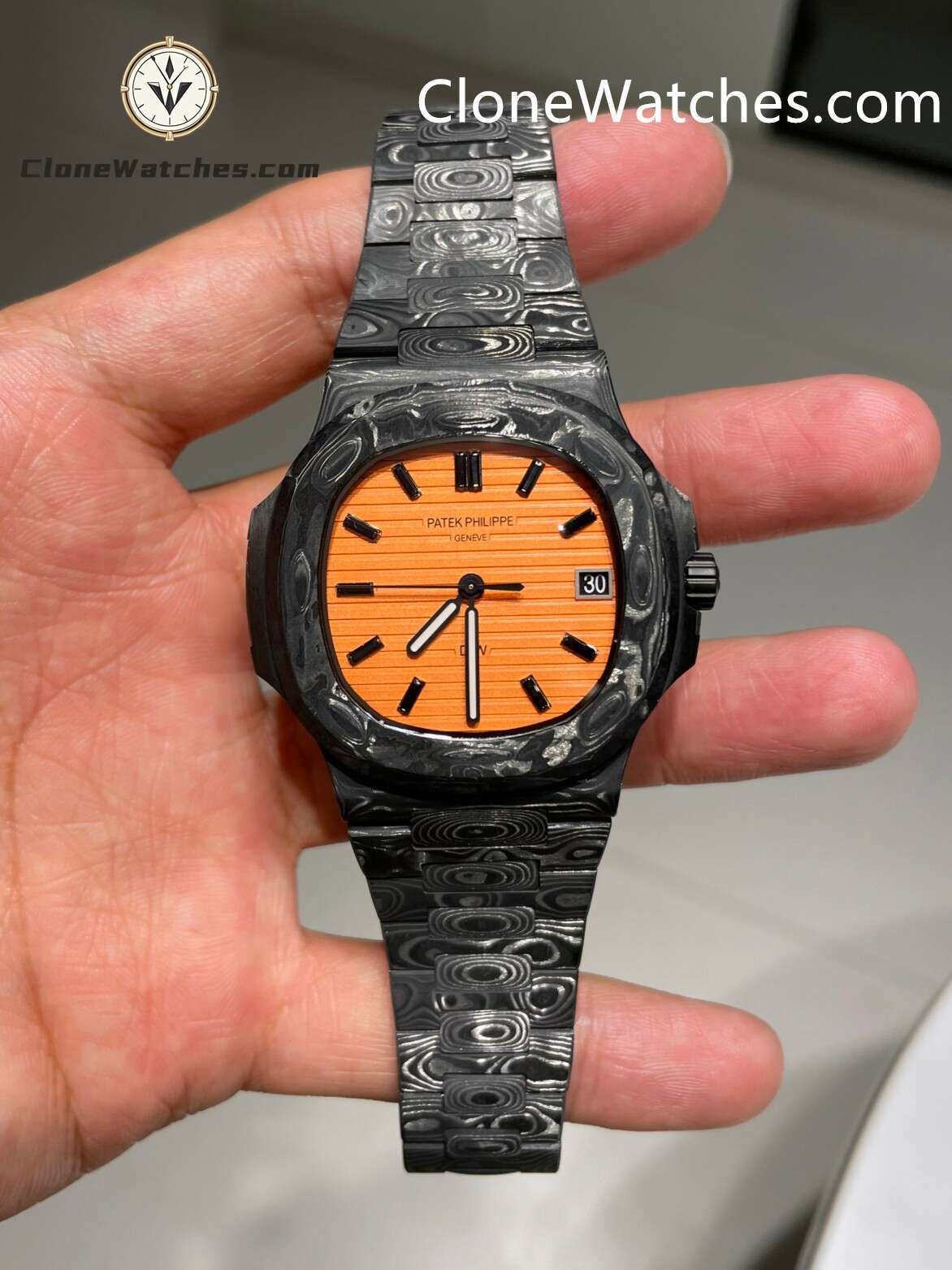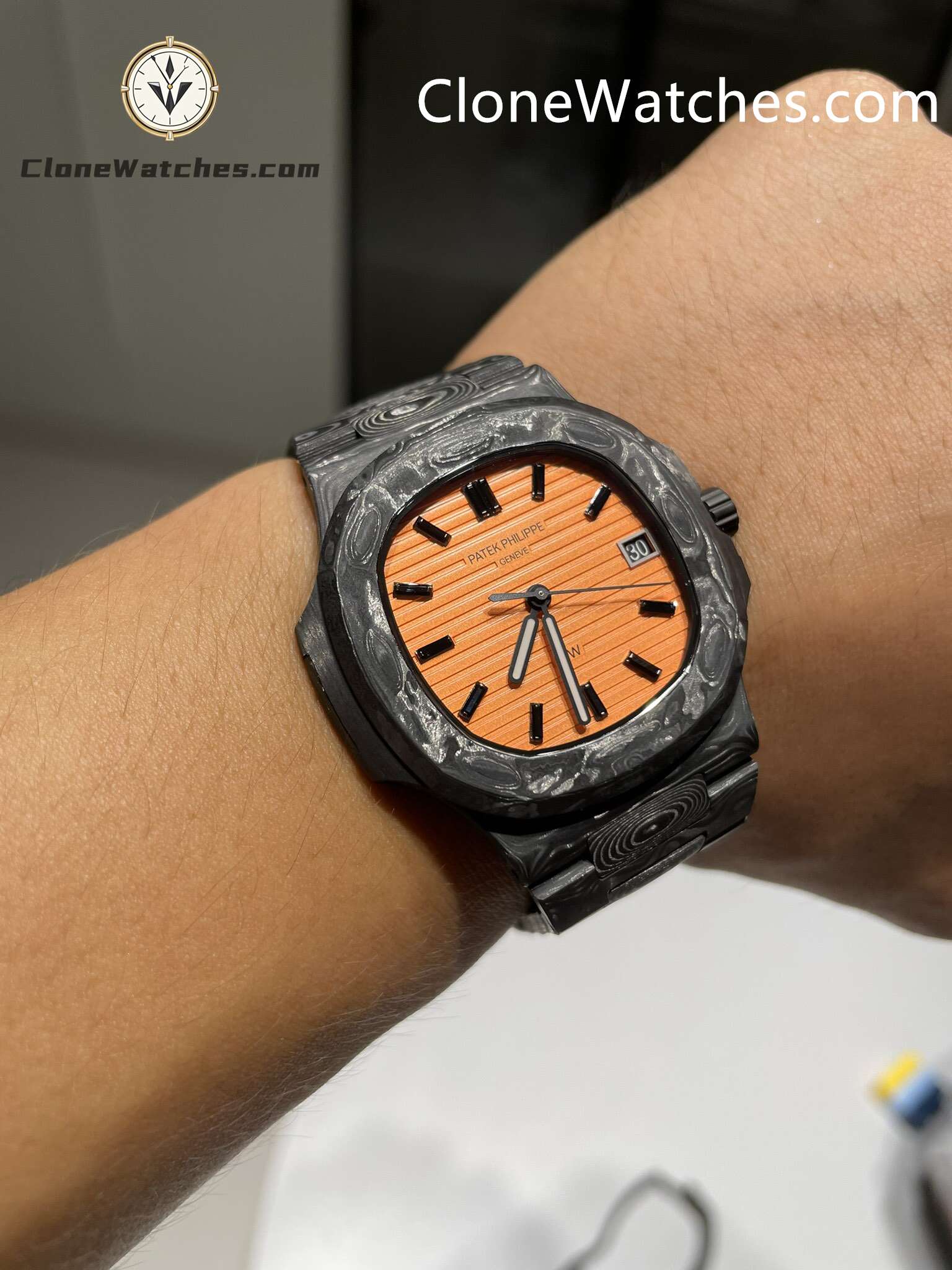 Super Clone Watches – Modified DiW Patek Philippe 5711 “ALL CARBON BLACK” Orange Dial