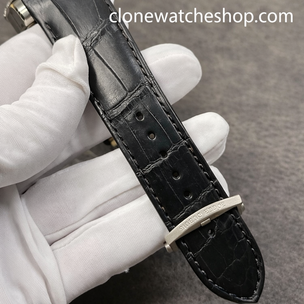 Clone Watches The rest of the strap is made of crocodile leather with full-edge technology. I believe that customers who know this know that the price of full-edge crocodile leather is nearly half of that of half-edge, and the texture is the texture of the whole crocodile leather after careful selection, and the scraps are all scrapped. The titanium alloy buckle overcomes the biggest problem in the market, the difficulty of welding and polishing titanium alloy, and is the most perfect.