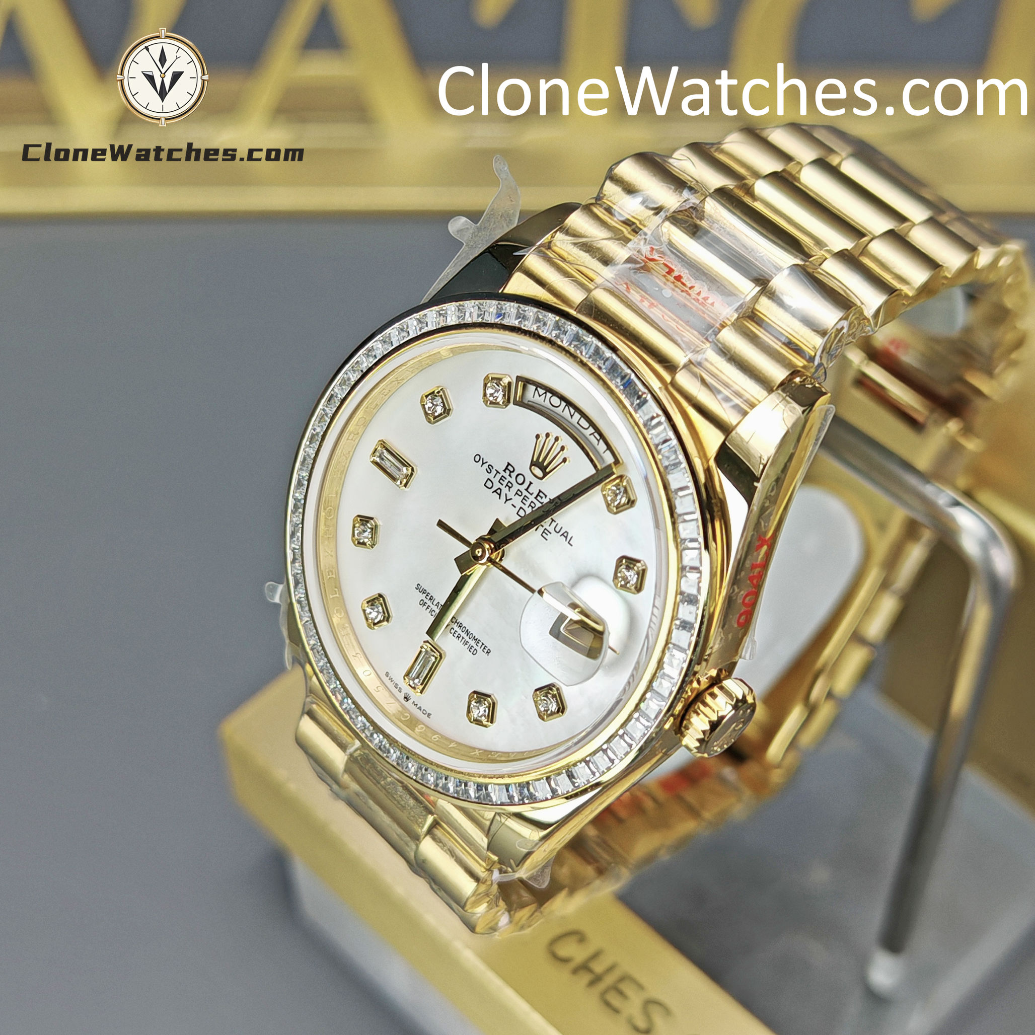 | Model | Rolex Super Clone Watches Day-Date Mother of Pearl Diamond Dial m128398tbr-0004 |