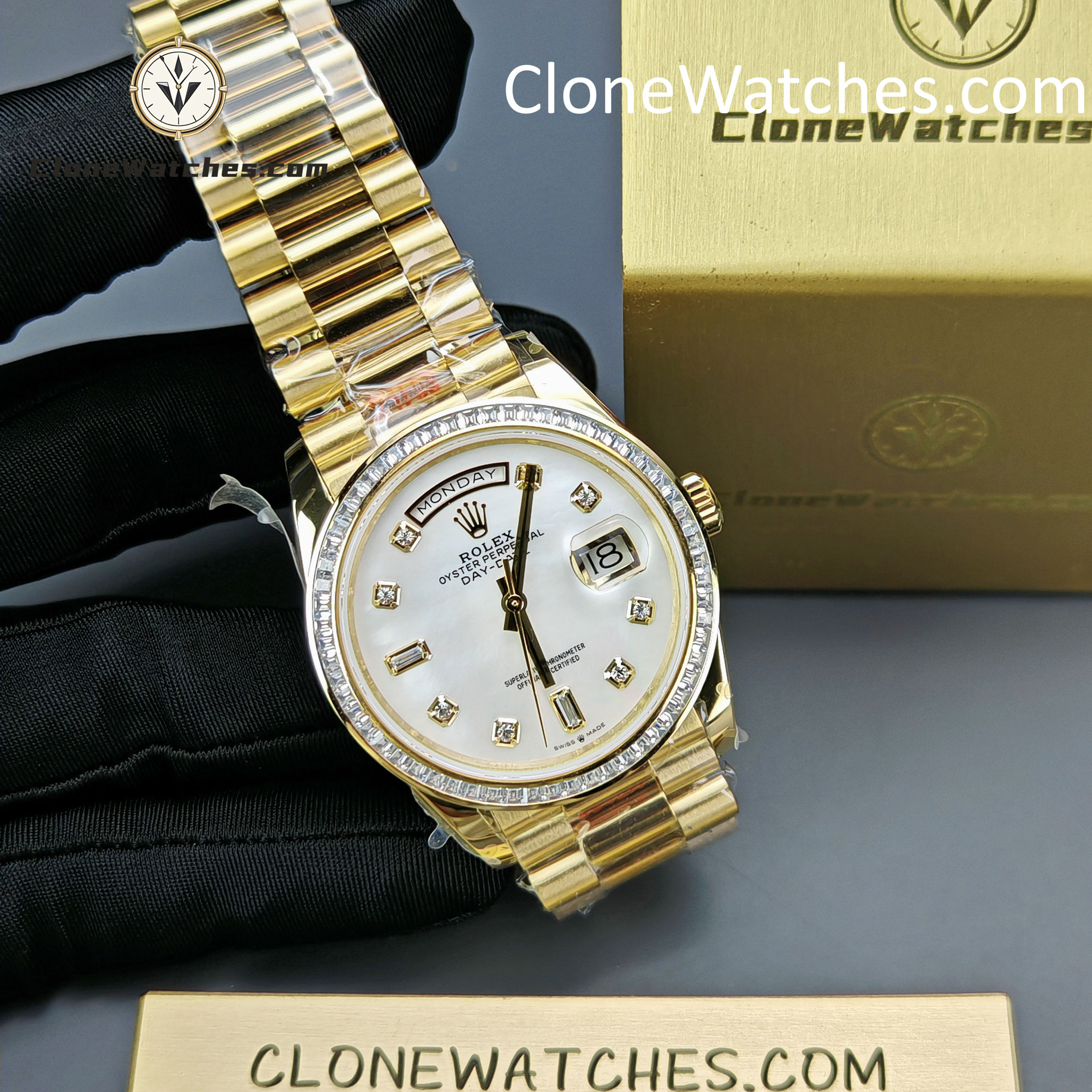 Model Rolex Super Clone Watches Day-Date Mother of Pearl Diamond Dial m128398tbr-0004