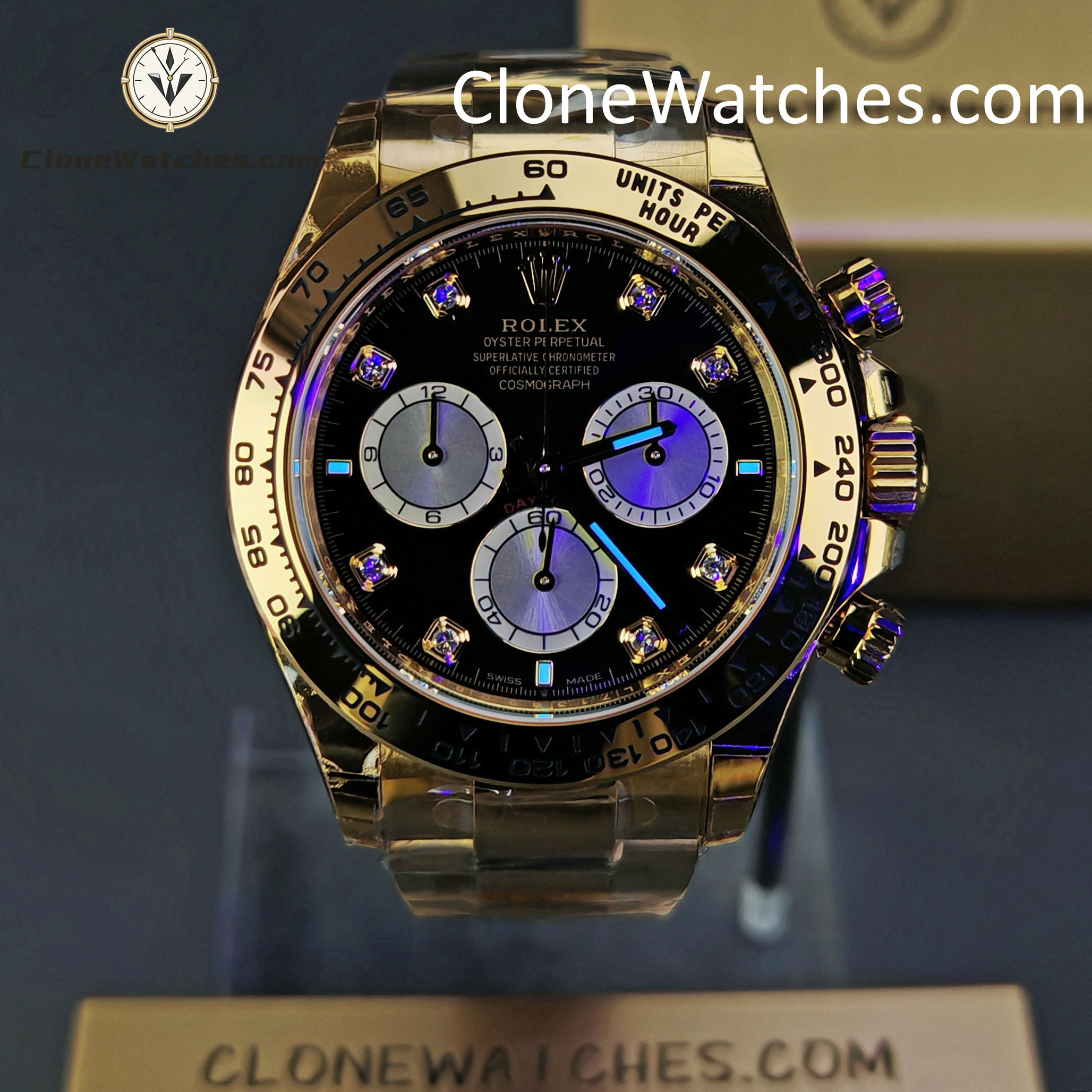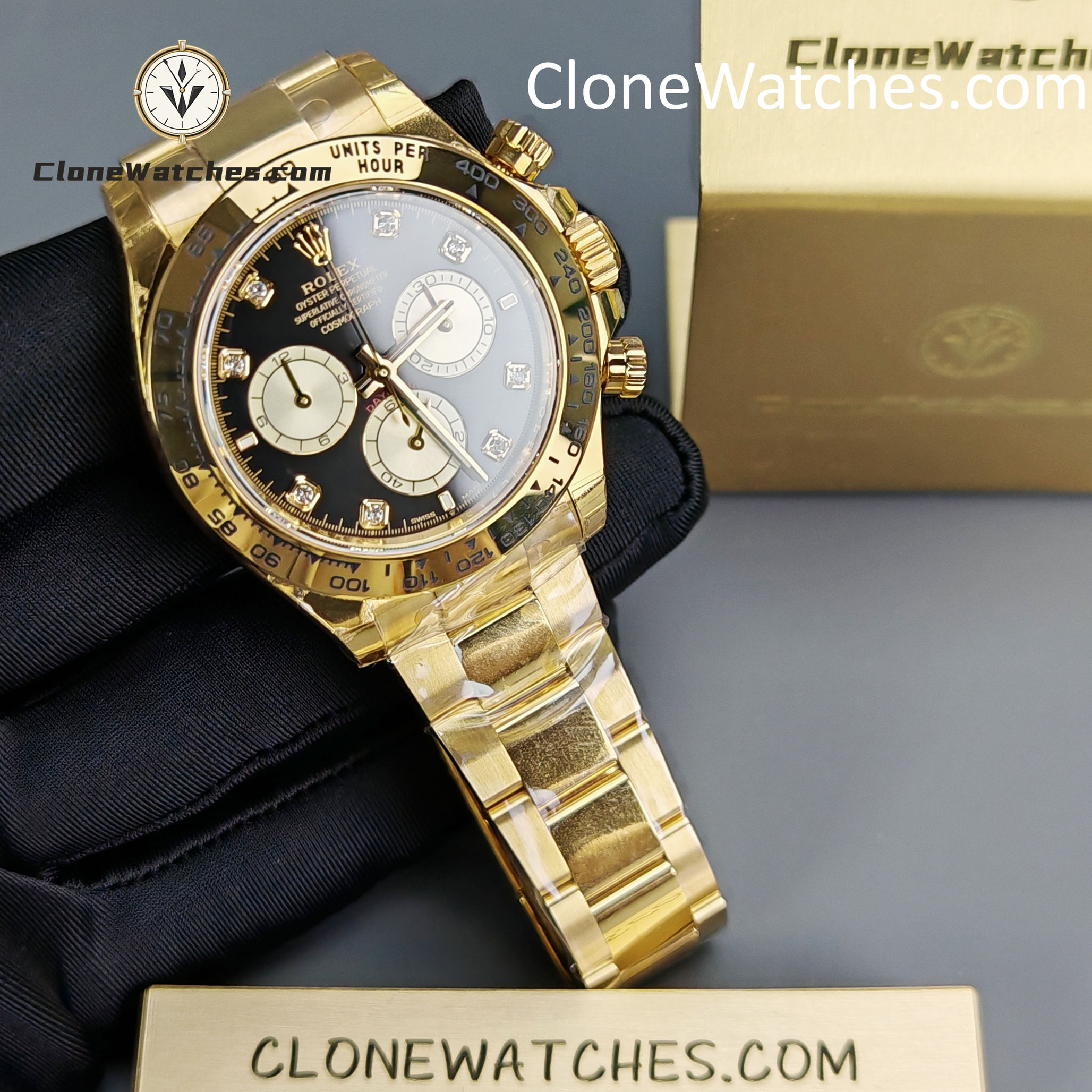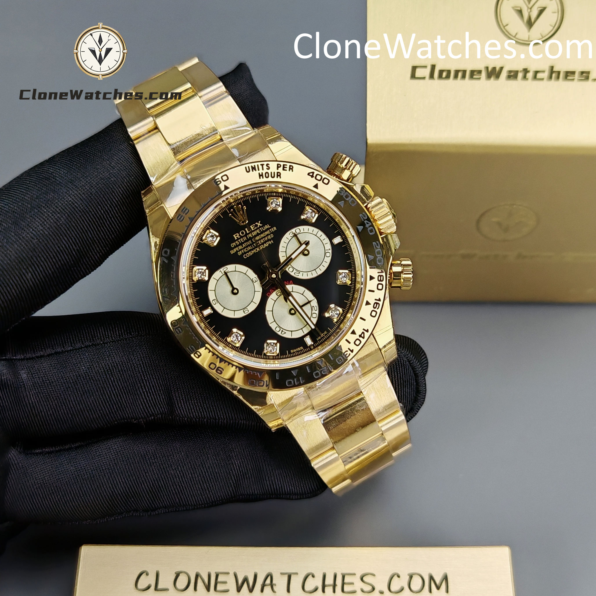 The Weighted Solution: By integrating high-density Tungsten Alloy into the case and bracelet links, this edition achieves a staggering net weight of approximately 183g. It delivers the dense, wrist-hugging authority of solid 18K Yellow Gold, setting a new benchmark for Super Clones.