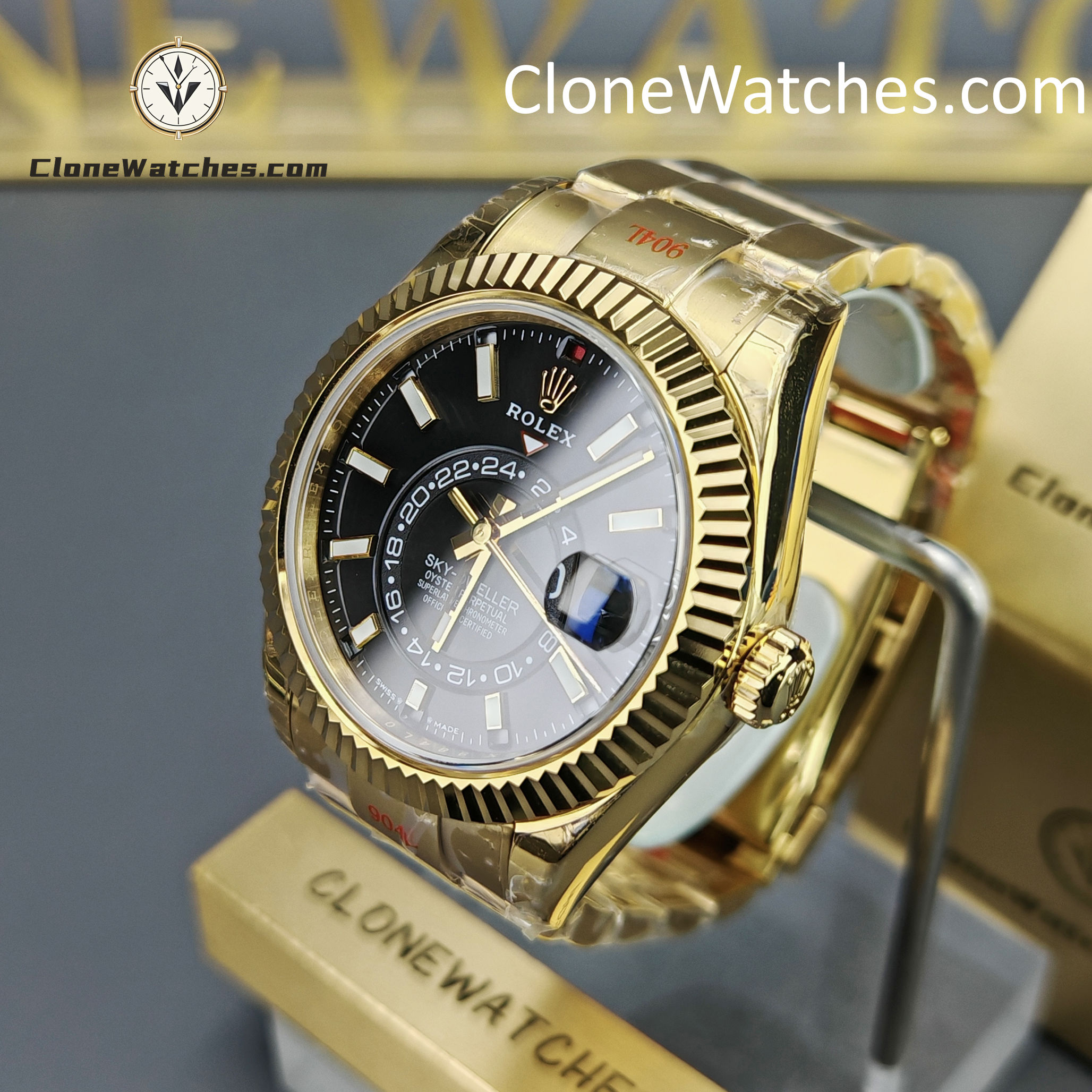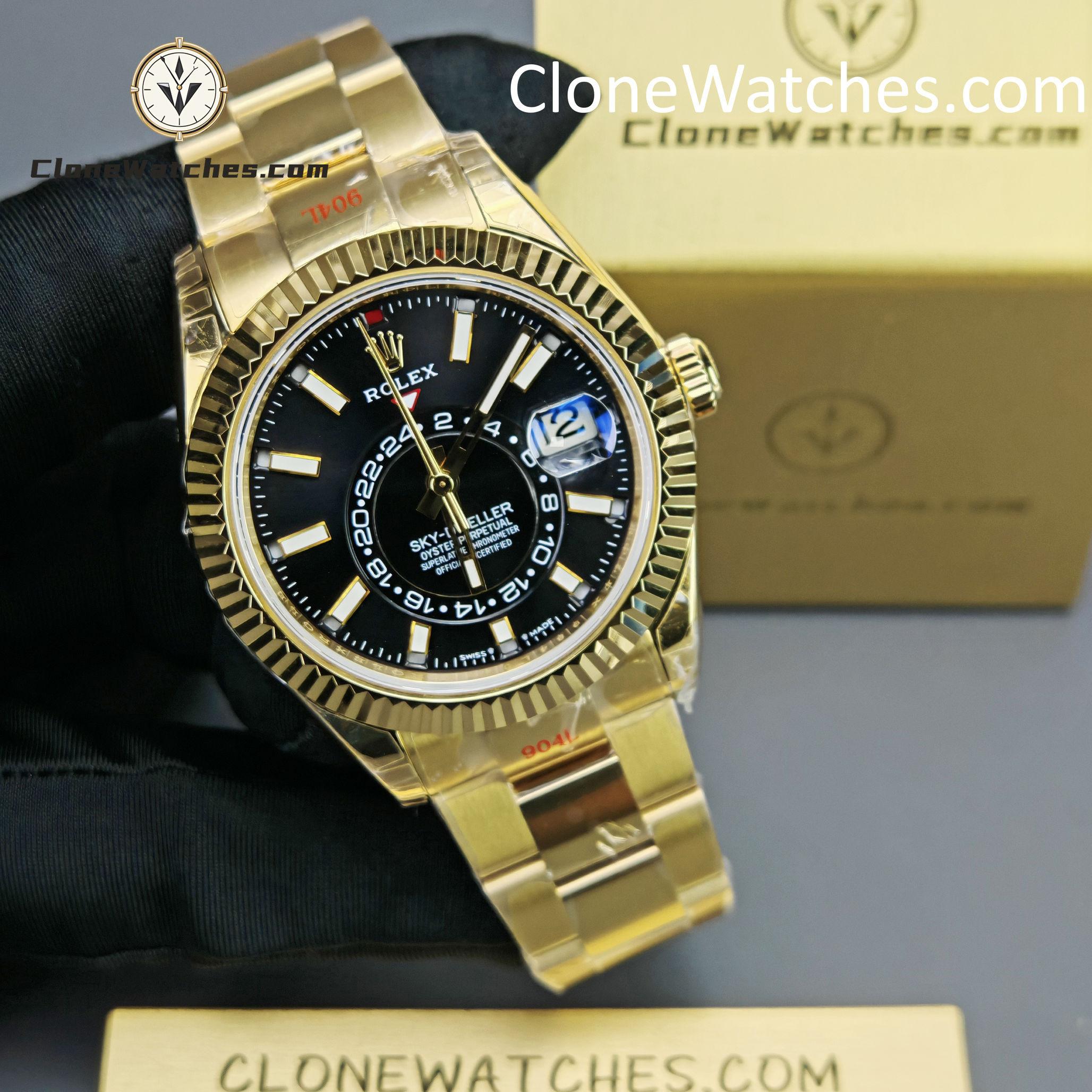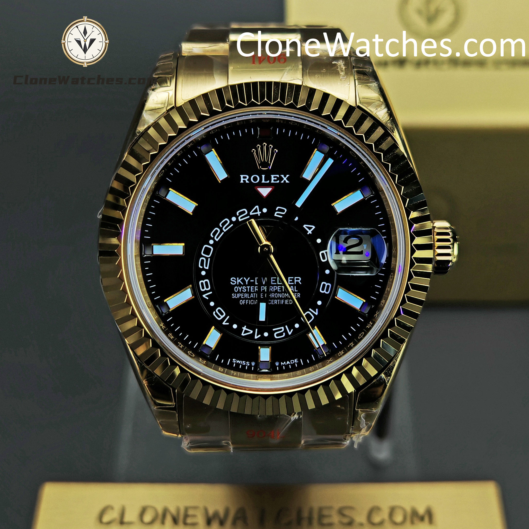 Super Clone Watches – Rolex Sky-Dweller Yellow Gold Black Dial Oyster M336938-0002 –Jubilee