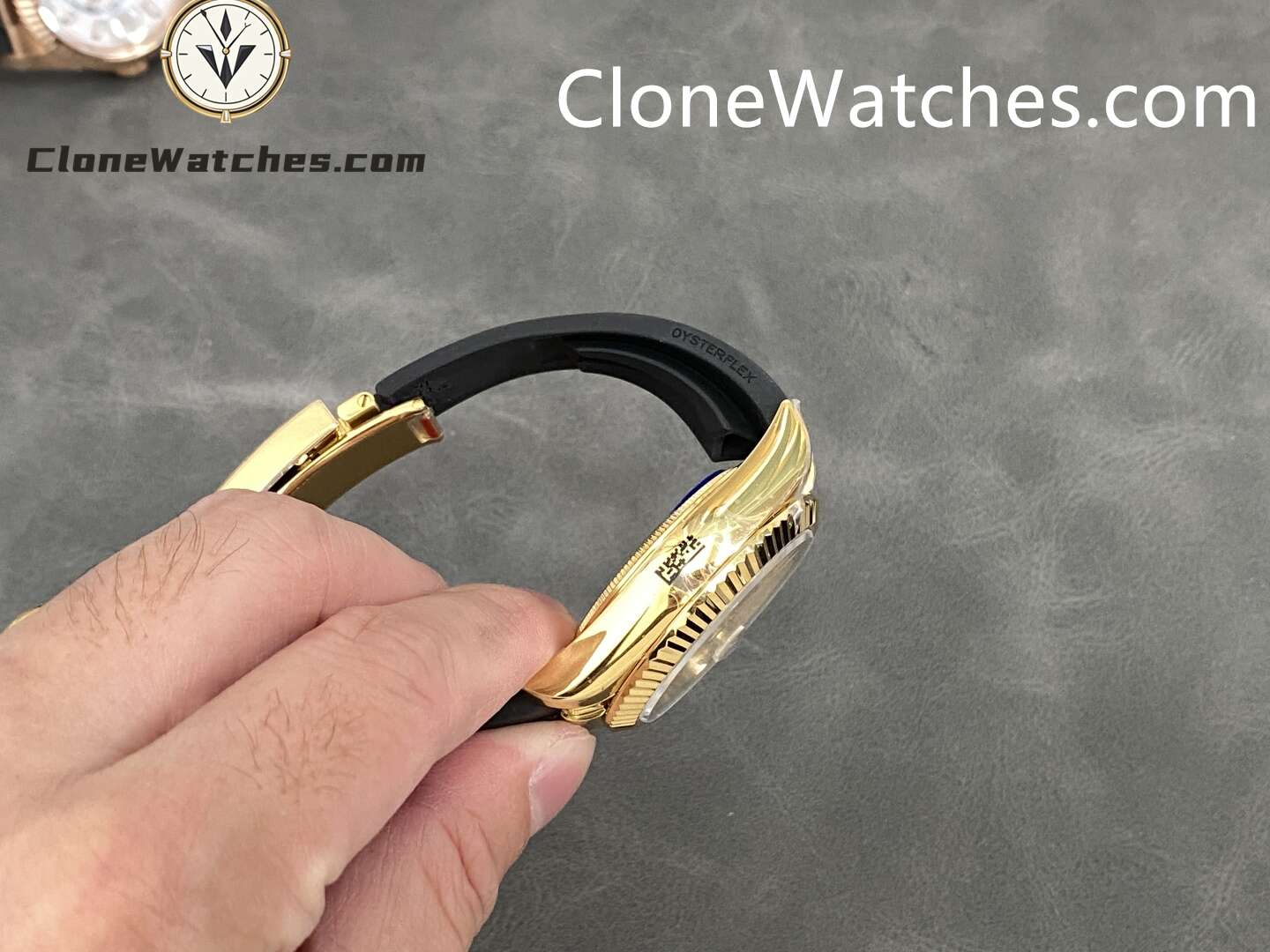 Clone watches 42MM Oyster case is made of 904L stainless steel, and the bezel is Rolex Ring Command triangular grooved bidirectional rotating bezel. The rotating outer ring can adjust the month function. The clasp is a folding Oyster buckle with a 5MM easy-to-adjust chain extension system.