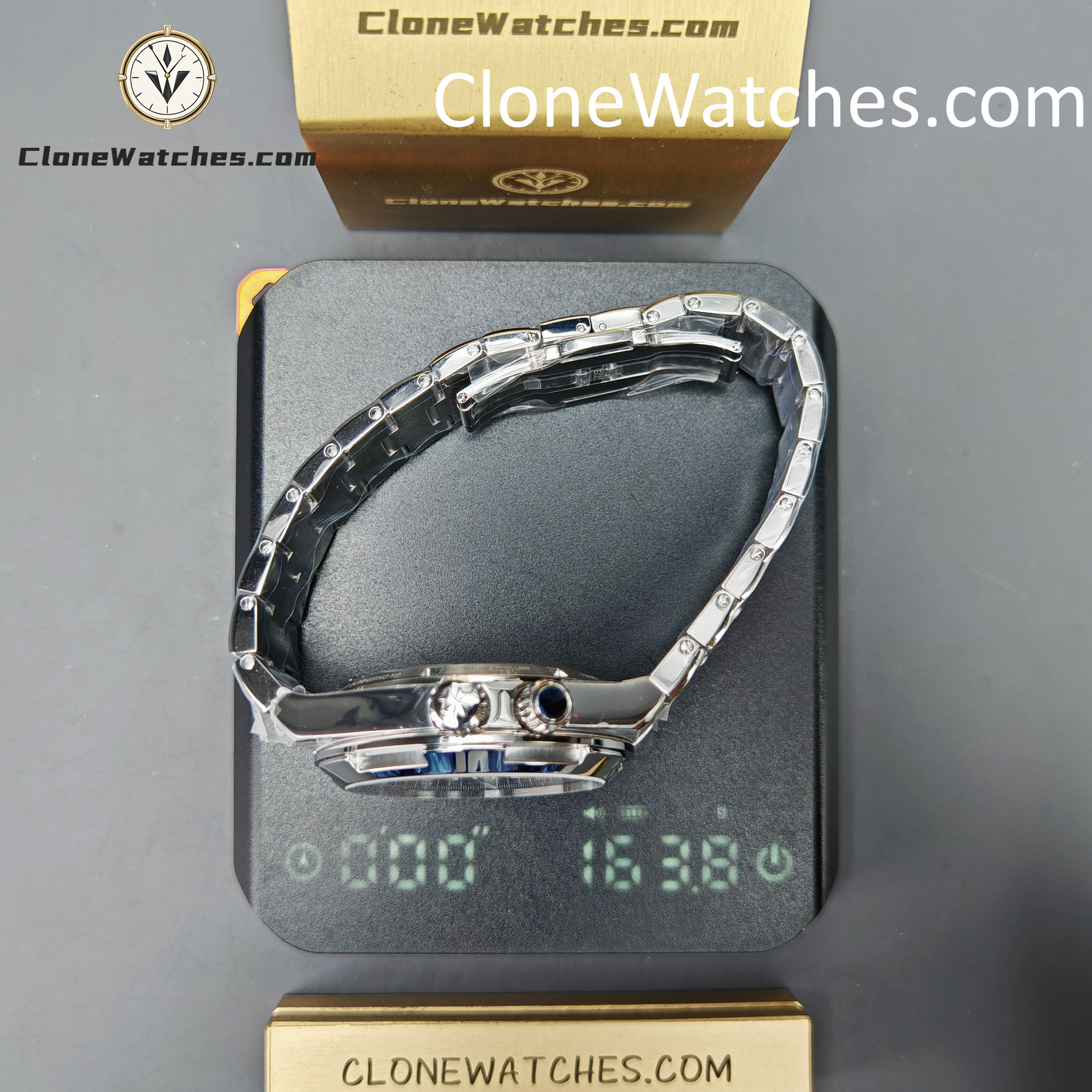 A: The genuine 7900V is approximately 12.8mm thick. MKF has done an excellent job keeping this replica within 0.5mm of the original thickness, ensuring it slides under a cuff easily.