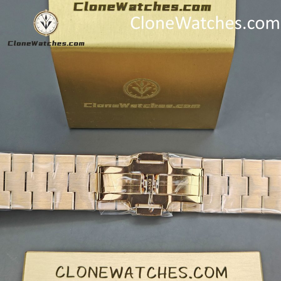【Case】41mm stainless steel case, 11mm thick. Equipped with anti-magnetic soft iron device and screw-in crown, it can protect Clone Watches from magnetic interference and ensure the accuracy of travel time. The polished stainless steel case has smooth lines and beautiful shape, which can be perfectly connected with the bracelet/strap.
