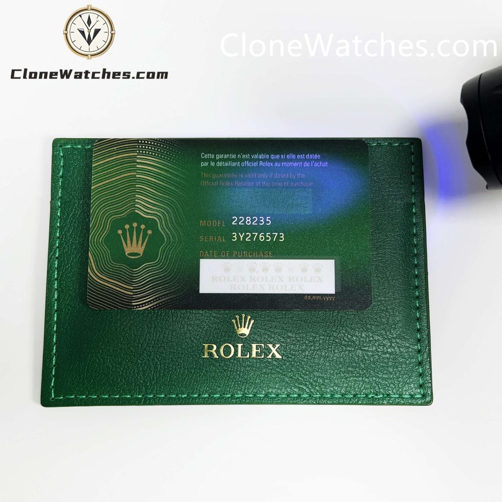 Just like the genuine article, our warranty cards feature a scannable NFC chip. It links directly to the official site on your phone. Under UV light, the invisible watermarks appear.